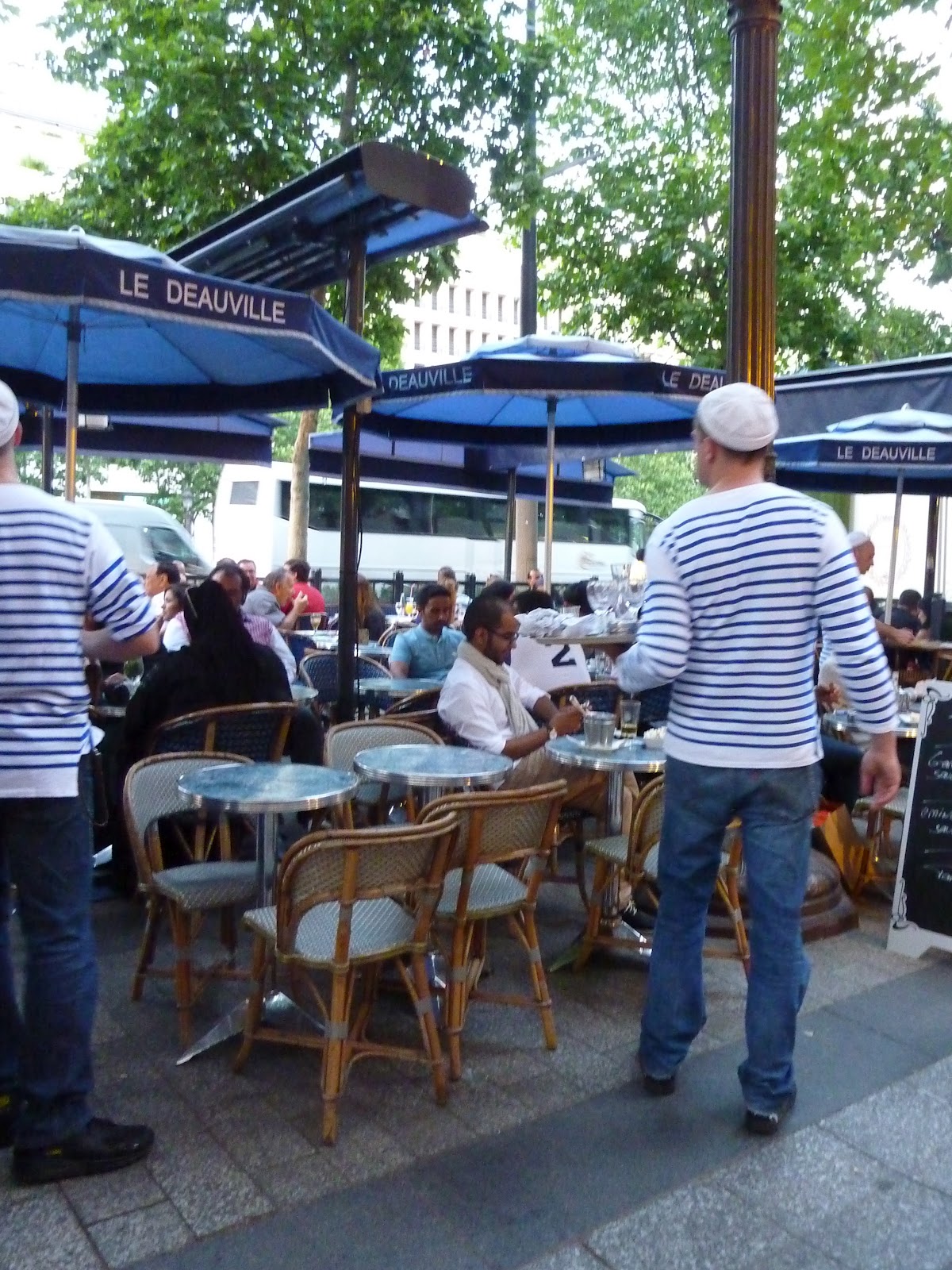 All of the cafes and restaurants had outdoor seating and a lot of tables had the seats both facing towards the street